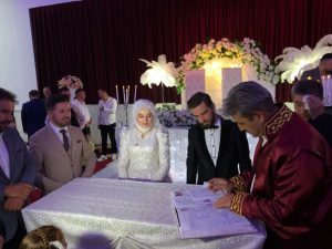 Duyar, evlenmek isteyen çiftlerin, talebine dair müracaatlarını kabul ederek, mevzuatın öngördüğü şekilde dosyalarını mümkün olan en kısa sürede hazırlayarak, evlilik akdini gerçekleştirdiklerini belirtti. Duyar, Nikah işlemlerinde kayıt ve diğer yazışmalar bilgisayar ortamında yapılmaktadır. Gerekli evrakların getirilmesinin ardından en kısa sürede nikah merasimine randevu verilmekte. Nikah işlemleri son ana bırakılmaması gerekir. Çünkü olası eksiklikler yüzünden nikah işlemlerinde gecikmeler söz konusu olabilir. Bu gibi duruma düşülmemesi için çiftlerimizin evlilik işlemlerini son güne bırakmamalarını istiyoruz. Bu vesile ile bütün çiftlerimize bir ömür mutluluklar diliyorum.”diye konuştu. Haber Merkezi