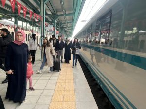 Türkiye’nin asrın projeleri arasında yer alan Ankara-Sivas Yüksek Hızlı Tren (YHT) hattının açılışını önceki gün Cumhurbaşkanı Yardımcısı Fuat Oktay, Ulaştırma ve Altyapı Bakanı Adil Karaismailoğlu, AK Parti Genel Başkanvekili Binali Yıldırım, BBP Genel Başkanı Mustafa Destici ve Yeniden Refah Partisi Genel Başkanı Fatih Erbakan’ın katılımıyla yapılmıştı. Cumhurbaşkanı Recep Tayyip Erdoğan’ın Ankara-Sivas Yüksek Hızlı Tren’de ulaşımın Mayıs ayı sonuna kadar ücretsiz olacağını duyurmasının ardından ilk yolcular, Yozgat garında ücretsiz olarak Ankara ve Sivas’a gitmek üzere hareket ettiler. Biletlerini telefon uygulamaları ve internet üzerinden alan vatandaşlar Yozgat Garına gelerek biletlerini gösterip trene bindiler.