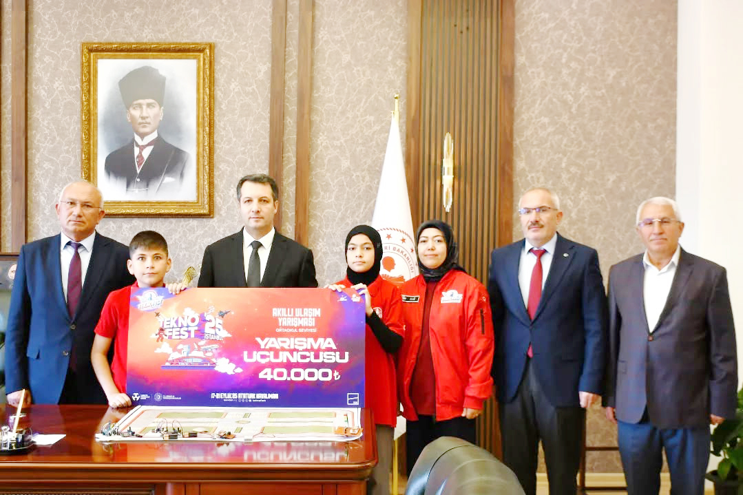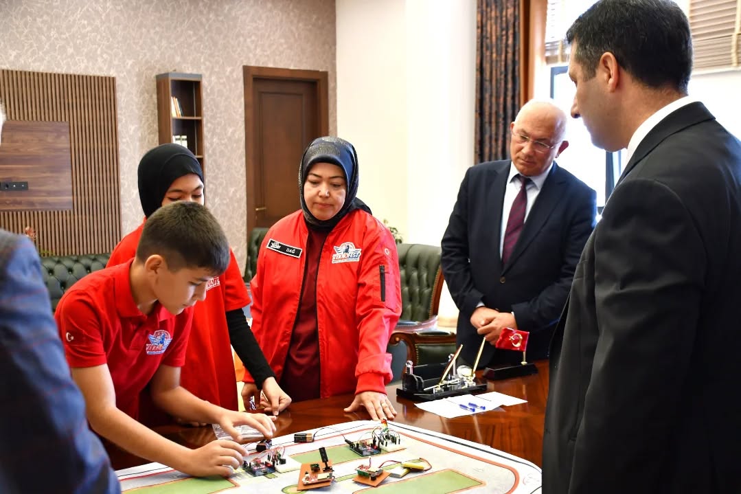 Sorgun Kaymakamı Abdurrezzak Canpolat, TEKNOFEST 2025 Akıllı Ulaşım Kategorisi’nde Türkiye üçüncüsü olan Yunus Emre Ortaokulu öğrencilerini makamında kabul etti.