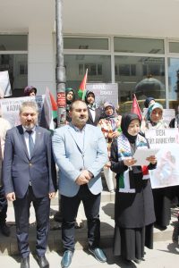 Kadın Kolları İl Başkanı Erva Kevser Yurtlu, basın açıklamasında İsrail tarafından Filistin’de katledilen annelere değindi.