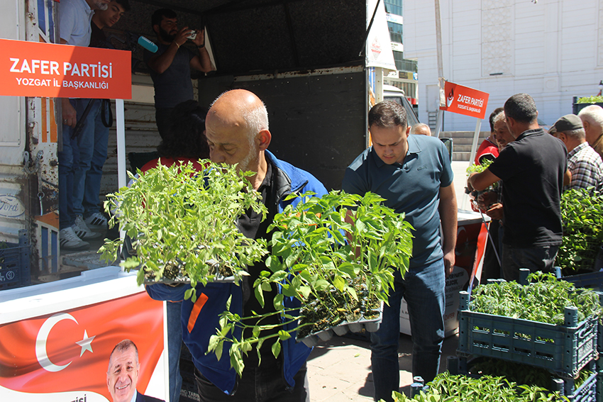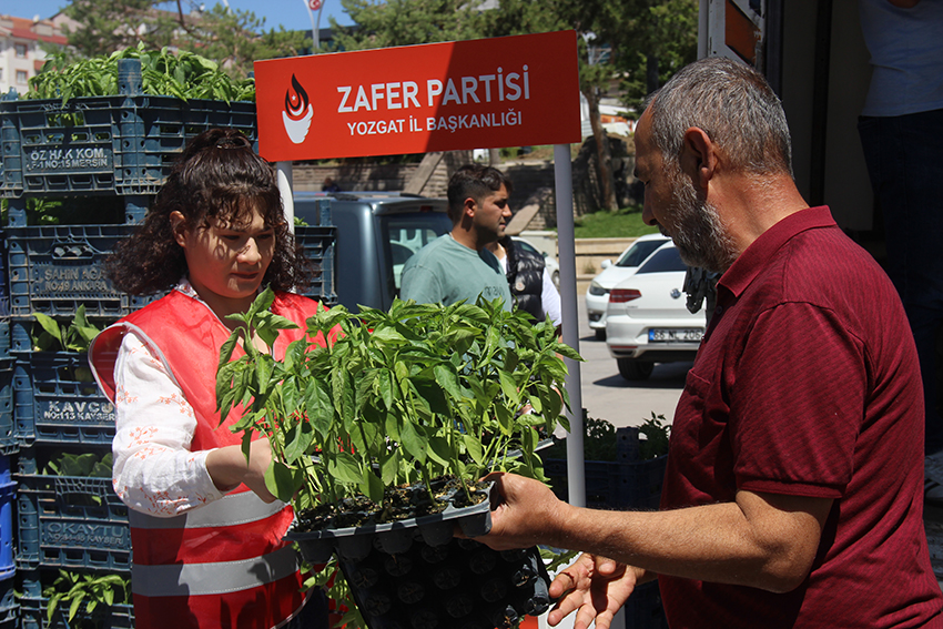 Zafer Partisi Yozgat İl Başkanlığı, dolu afetinden zarar gören çiftçilere yönelik ücretsiz sebze fidesi desteği başlattı. Yozgat Cumhuriyet Meydanı’nda düzenlenen programda yaklaşık 40 bin fide dağıtılacağı bildirildi.